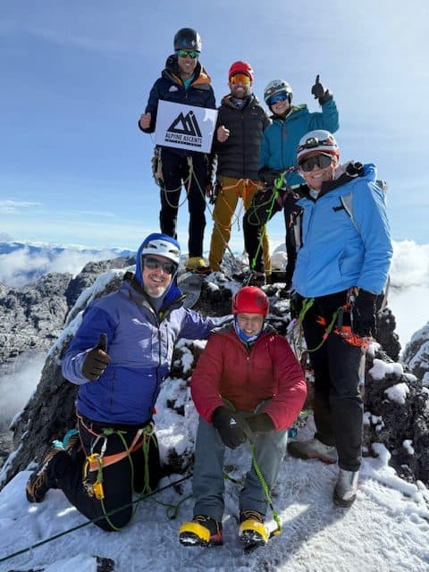 This morning at around 8am we had 100% success on the summit of Carstensz Pyramid! We began our summit attempt at 2am and were the only group climbing this morning. It had snowed a little the night before so we had some patches of snow and ice which made the upper portion of the route a little more slippery and slower going. The team all did very well and stayed strong throughout the climb. We are now back at Basecamp and we are relaxing, and trying to stay awake before dinner. We are hoping the weather is good tomorrow morning and if so we could be on our way back to Bali by evening time.