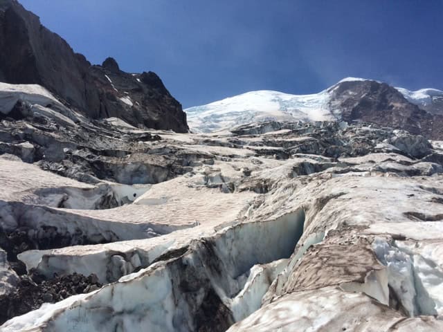 Our 8-Day Course tried to head out towards Camp Schurman via the Winthrop but the glacier was looking pretty broken and dry. They decided to backtrack and instead work on rappelling and belaying for the rest of the day. The team is crushing the mountaineering course curriculum! They just have to finish navigation and crevasse rescue. Tomorrow, they will head to Camp Schurman by going up and over St. Elmo’s Pass. Good luck team!