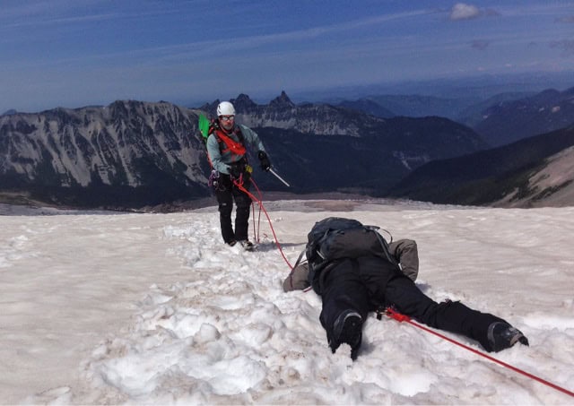 Crevasse rescue day arrived! Everyone had a chance to hold a crevasse fall, rescue a climber and be the victim in the “hole”. Self rescue was also performed using the Prussiking technique.
