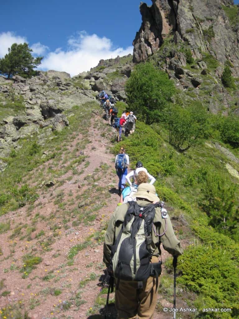 Hello there friends family and loved ones, Mountain Czars reporting in from Russia. We are at our high camp right now, we moved up today in clear skies and windy weather, up to 15,000 feet above Pastukov Rocks, the top of the rocks, just to get look around, and to acclimatize. Everybody seems to be doing fairly well on those fronts. We even did a little skills training set with footwork and how to use our feet in such a way as to climb efficiently. And on the way down we were able to jump in our plastic bags and slide down the mountain, you should have been there, lots of fun.