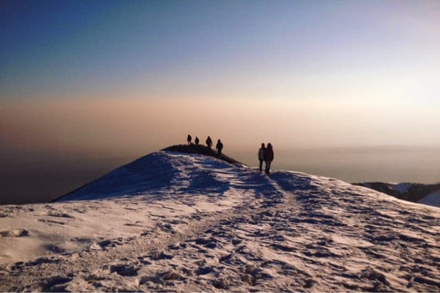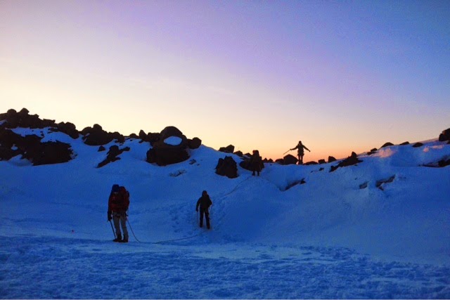 Lead guide Devin Bishop sent in some photos from their weekend summit of Mt. Rainier via the Disappointment Cleaver. It was a beautiful morning and a tremendous summit experience was enjoyed by all.
