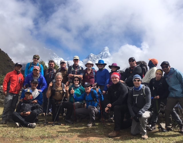 We had a great day today exploring Namche. This morning we hiked uphill above Namche town to get some acclimatization in and to enjoy the views, such as they were. The mountains were playing hide and seek with the moving clouds, but we did get glimpses of Ama Dablam, Lhotse, and Thamserku. For those of us looking carefully at the right time, Everest came in and quickly out of view.