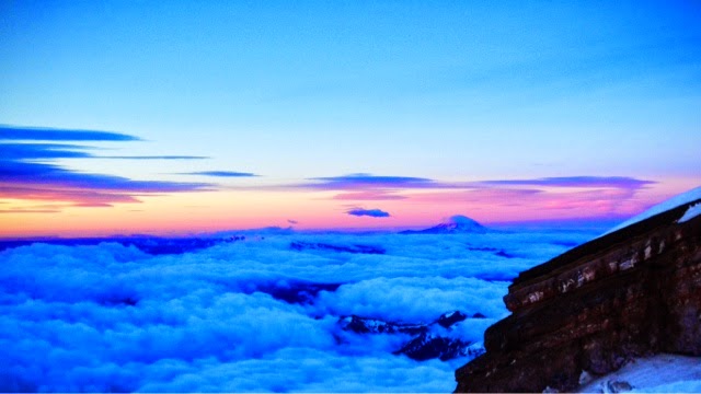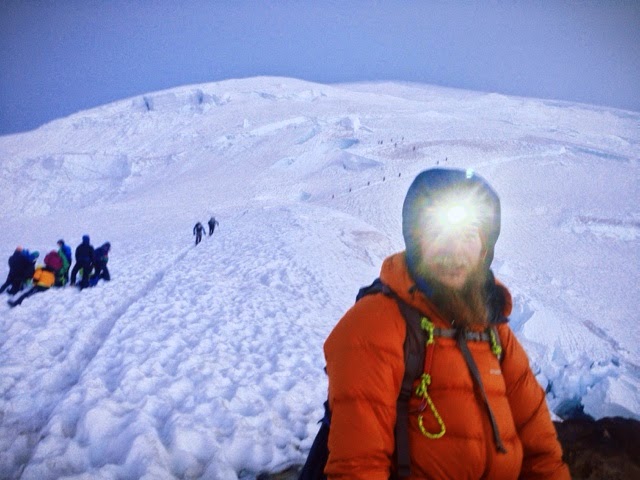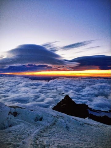 Hutch climbers made a valiant attempt at the summit yesterday, but were turned back after several determined efforts to cross a crumbling snow bridge at 13,000 feet. They were treated to a spectacular sunrise though.