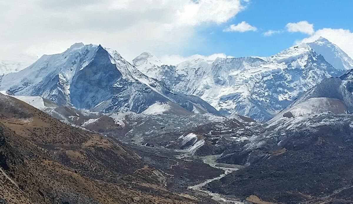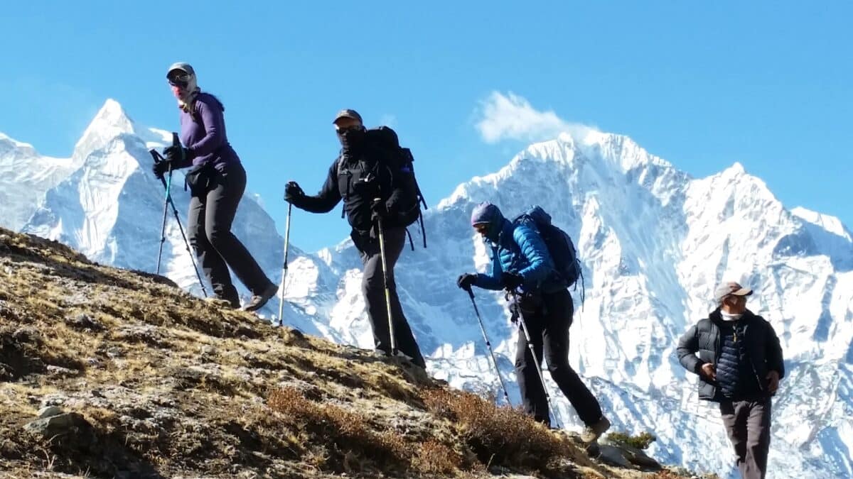 For our Island Peak climbers, we got the first glimpse of the challenge ahead on the left.