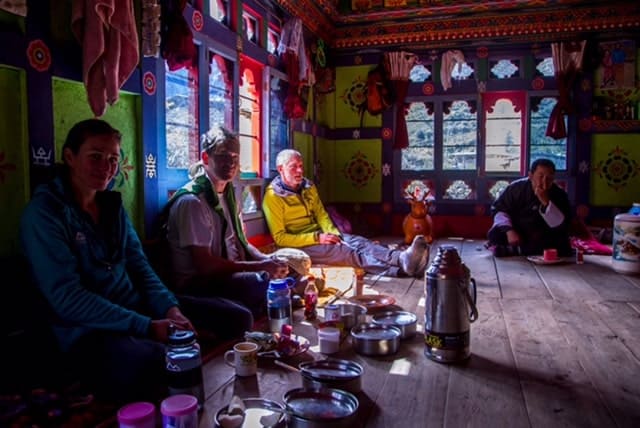Today we had a short walk (about 7 miles) and it might have been the favorite day so far among the group. We started the morning with blue skies, eating breakfast while the sun warmed us as it rose above the mountains. After breakfast we headed up a short hill and continued up to the Lingshi Dzong (fortress). This fortress was damaged in the Nepal earthquake in 2015 and has since been abandoned. It was still quite impressive— a 16th century building perched high on a hill in the middle of the valley. Next we descended into Lingshi village where we visited a school and got to visit with the kids. They all spoke great English and were very welcoming to us. We spent the rest of the day on a pleasant walk high above the valley and river, stopping at another small village where nice people let us come into their beautiful house to eat our lunch. One of my favorites things about these treks is visiting with locals and getting to experience their culture. It’s the best thing about traveling, and in my opinion, the only way to realize that we are all just people trying for the same things. People are good.