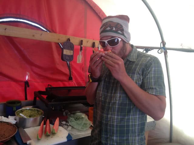 We like to celebrate our cultural differences at Alpine Ascents. The guide team shared the classic American tradition of watermelon in the summer with guide Tom Chambers who is studying for his citizenship exam.
