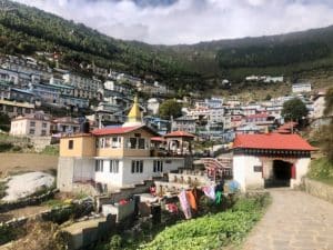 We’re already luxuriating in our new digs- the Panorama Lodge here in Namche- and will be very happy spending the next two nights here.