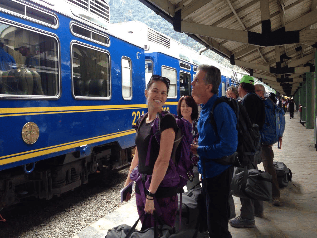 Down, down, down we hiked after lunch on switchbacks to the river valley below, to the train station at the hydro electric plant. This was the end of our Salcantay trek; over 41 miles trekking and thousands of vertical ft/m, stunning mountain landscapes, gorgeous starry nights, cultural exchanges and great company. We celebrated while waiting for the train naturally with ice cream and/or beer 🙂 We then caught the train to Aguas Calientes and settled into our hotel after a long journey.